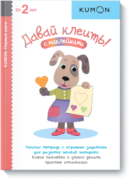 Серия «KUMON. Первые шаги» разработана для детей от 2 лет. Задания в тетрадях направлены на развитие мелкой моторики и подготовку руки к письму. Раскрашивая картинки, складывая бумагу, вырезая и делая простые аппликации, ваш ребёнок шаг за шагом будет приобретать навыки, необходимые для его дальнейшего обучения. В серии вышло 4 рабочих тетради: «Давай вырезать!», «Давай клеить!», «Давай складывать картинки!», «Давай рисовать!»