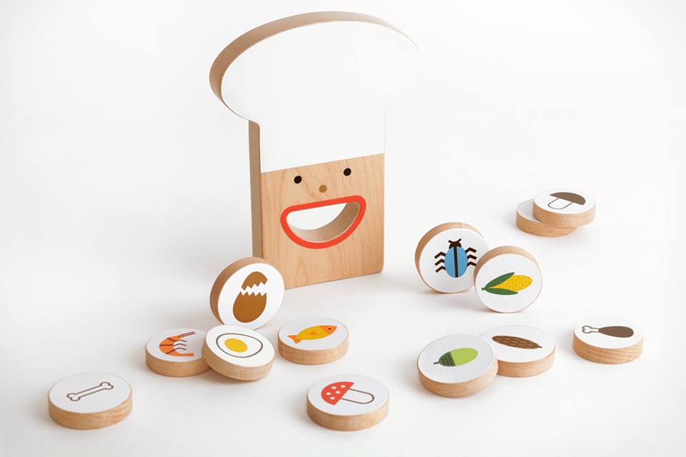 Деревянный конструктор. Надо подобрать фишки и угостить повара. Разобраться, что съедобное, а что несъедобное.