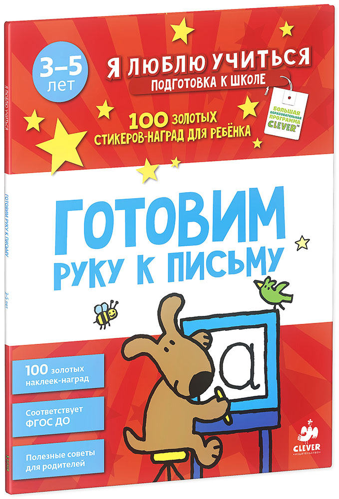 • Обучающая тетрадь «Готовим руку к письму» содержит золотые наклейки для поощрения успехов ребенка.