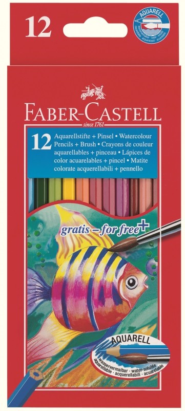FC114413 Акварельные карандаши COLOUR PENCILS с кисточкой, набор цветов, в картонной коробке, 12 шт.