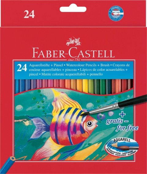 FC114425 Акварельные карандаши COLOUR PENCILS с кисточкой, набор цветов, в картонной коробке, 24 шт.