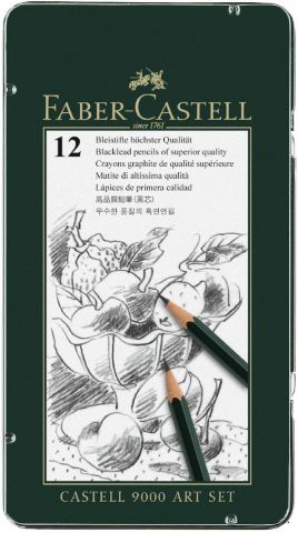 Карандаши чернографитовые CASTELL-9000, набор дизайнерский для живописи и графики, в металлической коробке, содержит 12 карандашей разной твердости: (8В,7В,6В,5В,4В,3В,2В,В,НВ,F,Н,2Н).