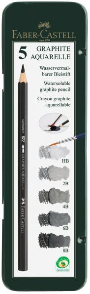 Водорастворимые графитовые карандаши "Graphite Aquarelle" представлены в 5-ти видах твердости: HB, 2B, 4B, 6B и 8B.