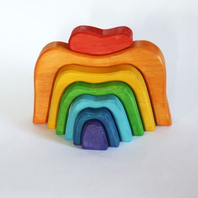 Пирамидка абстрактной живой формы, развивает в ребёнке тактильную чувствительность и восполняет тот дефицит природного, несимметричного, неправильного по форме, т.е. живого, который мы в нашей городской жизни с каждым годом ощущаем все больше и больше. По сравнению с обычными конструкторами, вальдорфские не содержат элементов креплений, то есть учат ребенка строить конструкции только за счет природного равновесия. Для маленьких детей (от года) такой вариант - идеален, ведь маленькие ручки еще не могут скреплять кубики, а вот выстроить башню или стену им уже под силу.