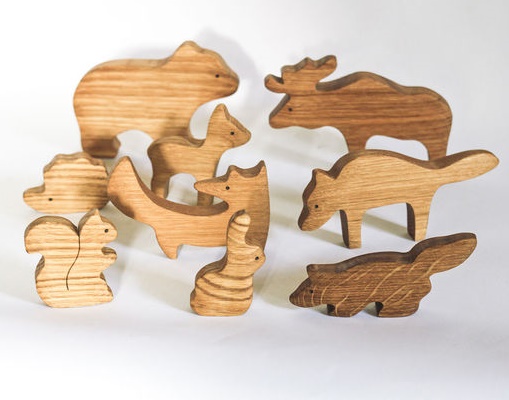 лось 12 см, мишка 11.5 см, заяц 5.5 см, лиса 9,5 см, волк 13 см, белка и зайчик 5 см