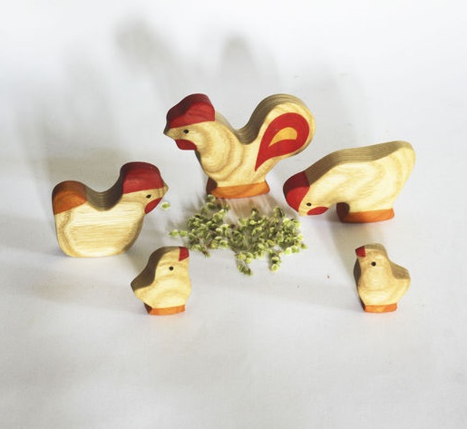 Размер: петух 6,5 на 5 см, куры 4 на 5 см, цыплята 3 на 3 см