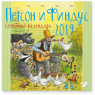 Традиционный семейный календарь на 2019 год с любимыми героями из книг Свена Нурдквиста. Он оформлен в виде планера: слева числа и дни недели, справа - четыре столбца с пустыми ячейками. Каждый столбец можно подписать, а затем добавить дни рождения друзей или составить список дел на каждый день. Каждый месяц начинается с картинки из книг о Петсоне и Финдусе. Календарь вешается на гвоздик.